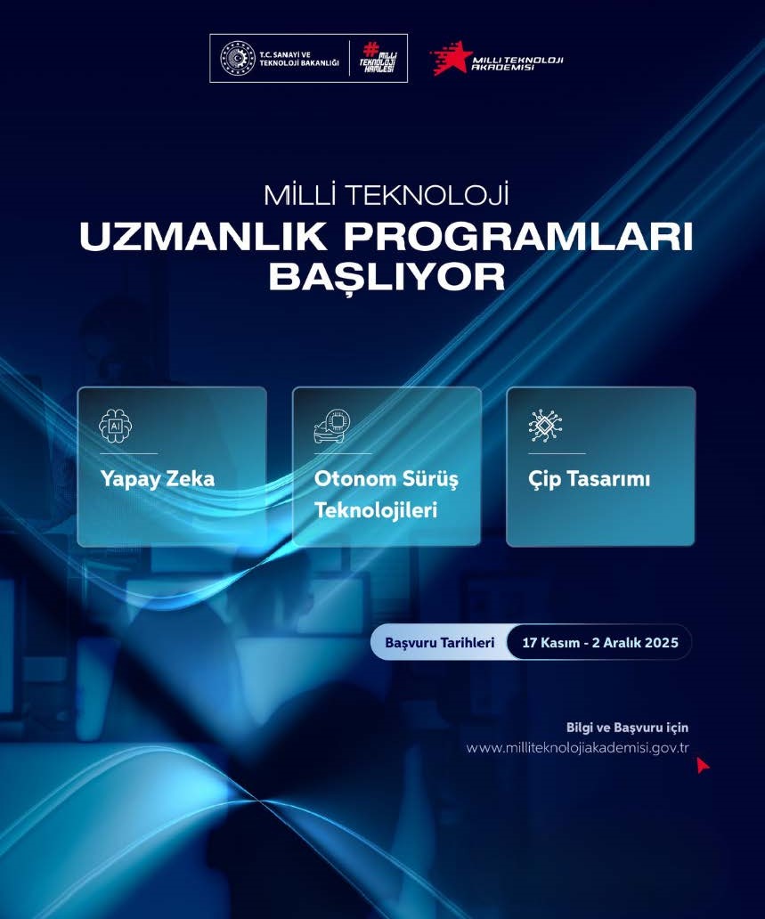 T.C. Sanayi ve Teknoloji Bakanlığı tarafından Milli Teknoloji Hamlesi çalışmaları doğrultusunda, ülkemizin teknoloji sektörlerinin ihtiyaç duyduğu nitelikli insan kaynağının yetiştirilmesine katkı sunmak amacıyla Milli Teknoloji Uzmanlık Programları Yapay Zekâ, Otonom Sürüş Teknolojileri ve Çip Tasarımı olmak üzere 3 alanda hayata geçirilmiştir.